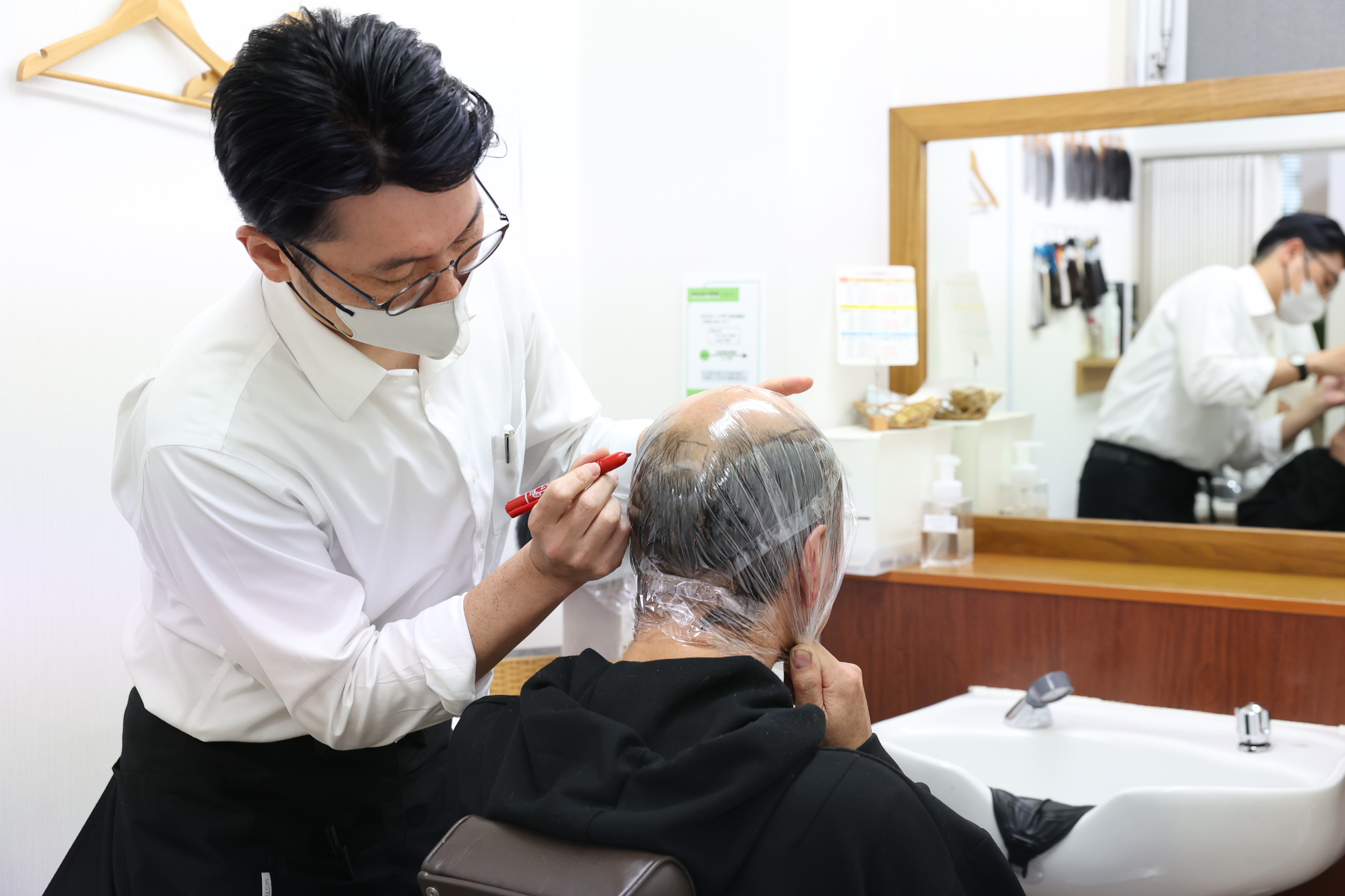 白髪を入れる場合、白髪の割合、入れる箇所もオーダーが可能です。