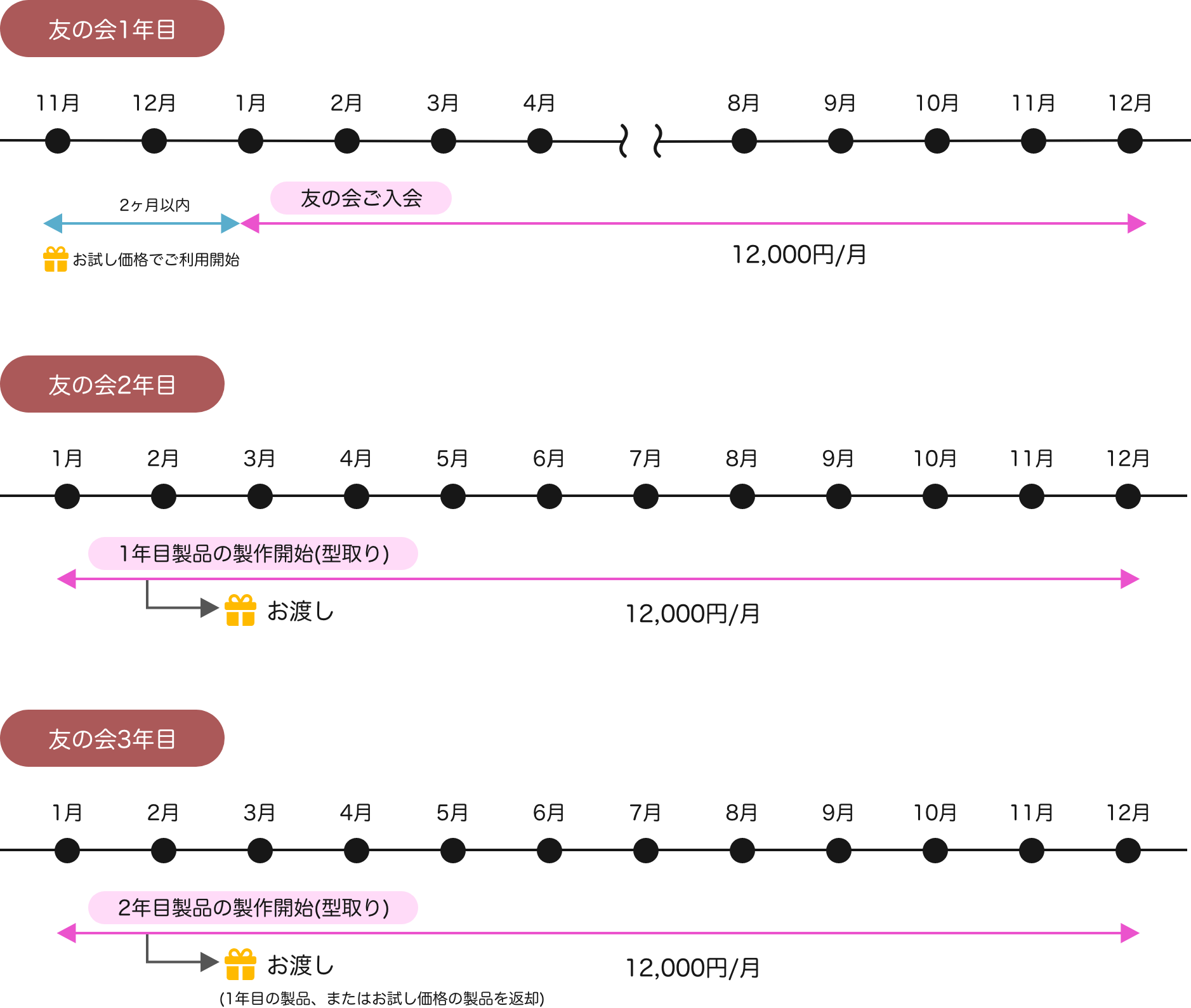 | 交換期間 | 月々のお支払金額 | 1製品あたりのお支払い金額 |